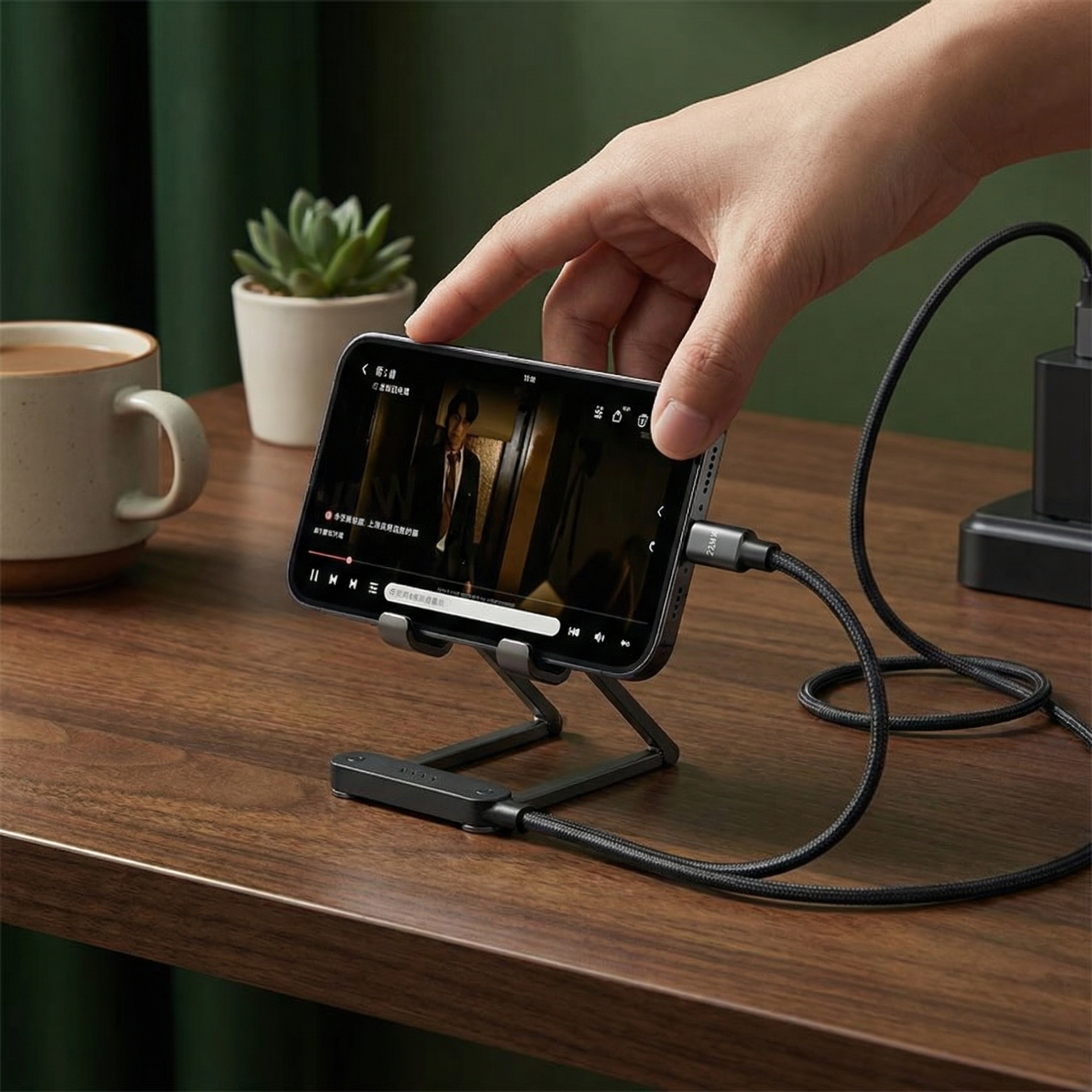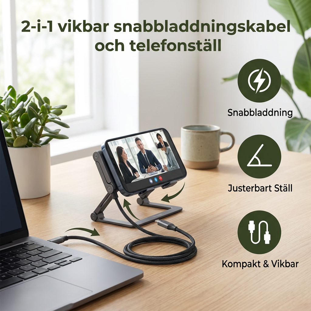 2-i-1 vikbar snabbladdningskabel och telefonställ