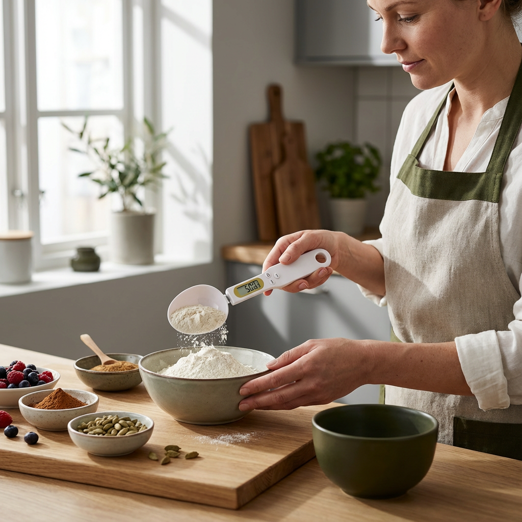 Upptäck den digitala mätskeden som hjälper dig att mäta exakta mängder för dina recept. Perfekt för matlagnings- och bakentusiaster samt för alla som behöver noggranna mått i köket.