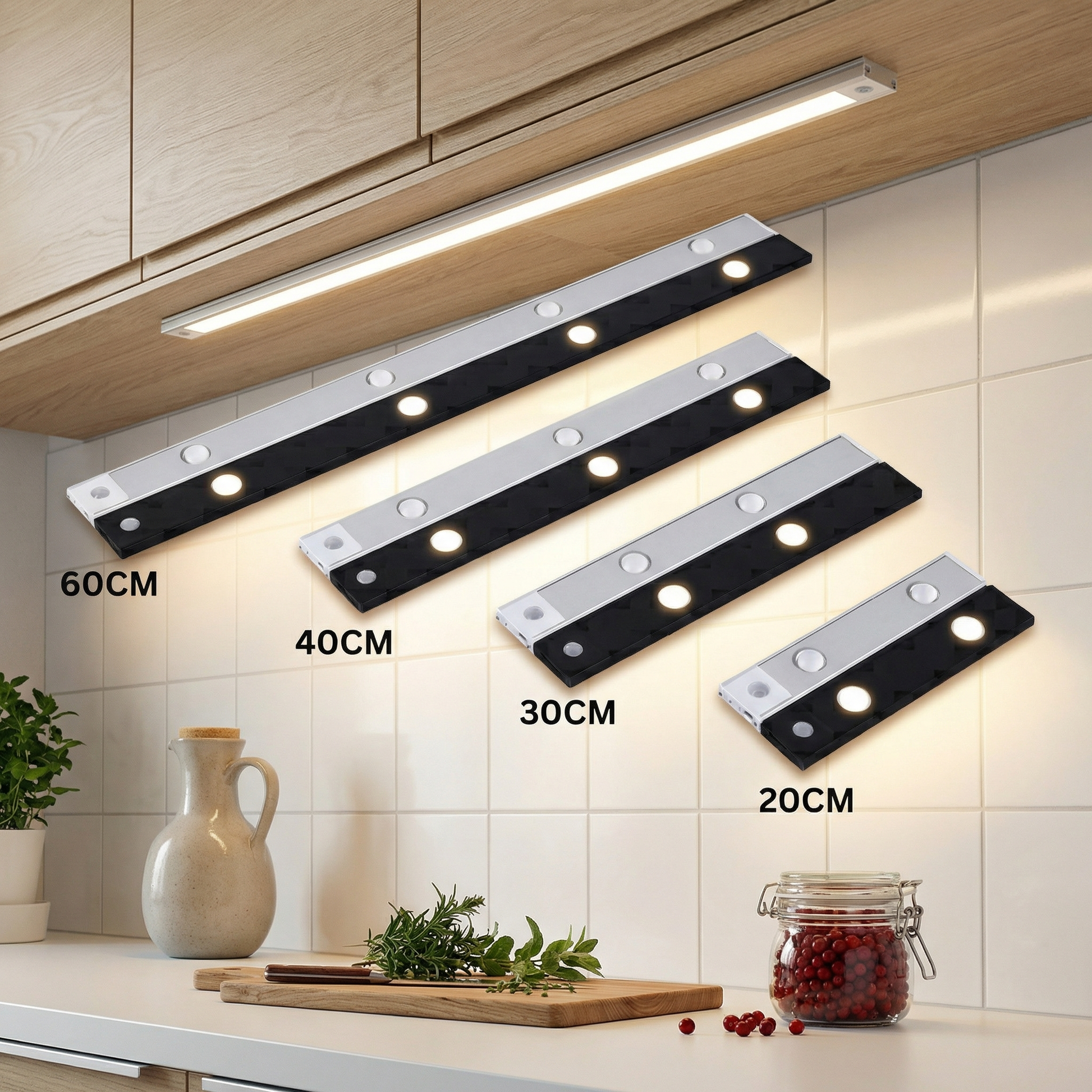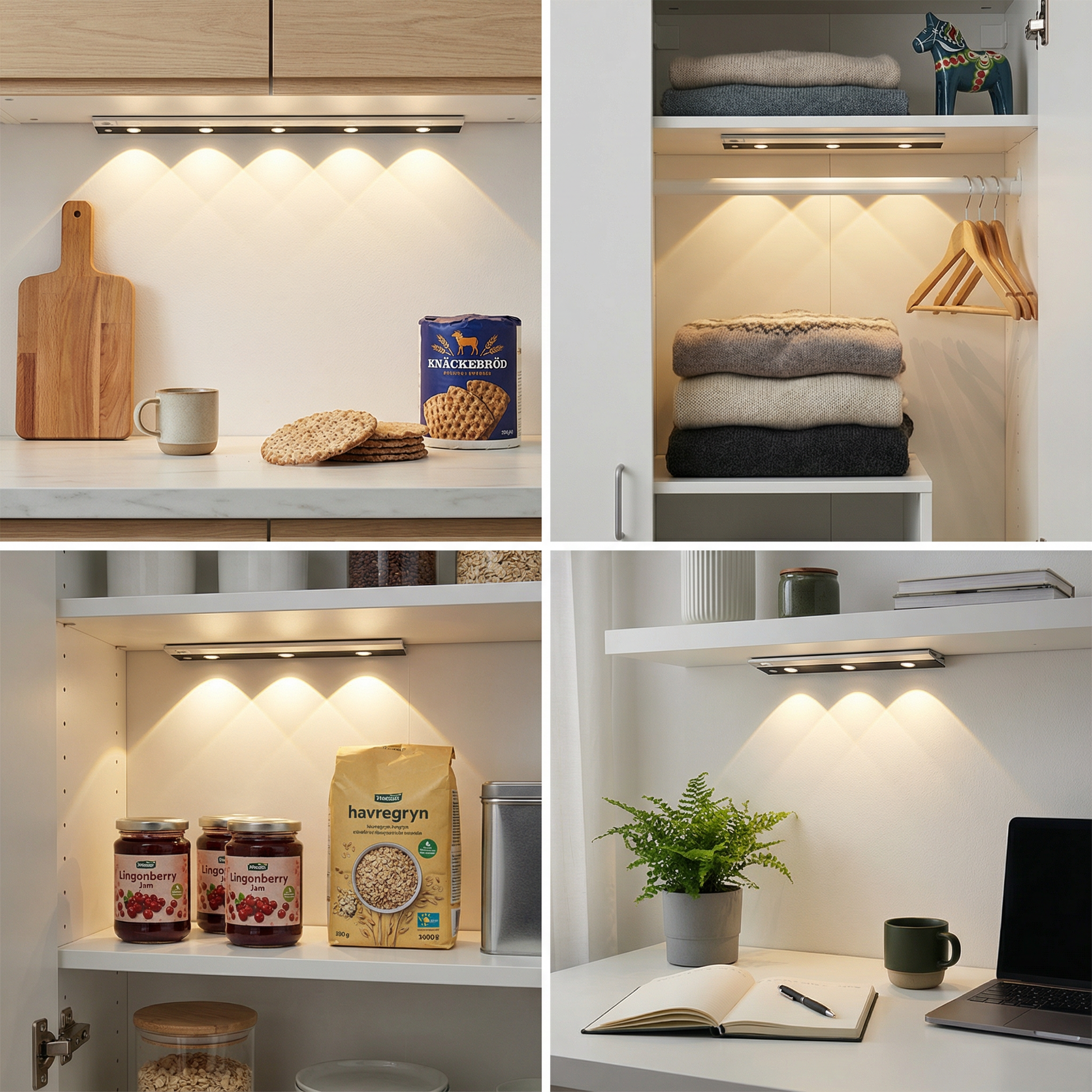 Vår energisnåla underbyggnadslampa är den perfekta lösningen för en ljus och jämn belysning av dina arbetsytor – oavsett om det är i köket, på kontoret eller i hallen. Den inbyggda rörelsesensorn gör att ljuset bara aktiveras när du verkligen behöver det, vilket minskar onödig elförbrukning.