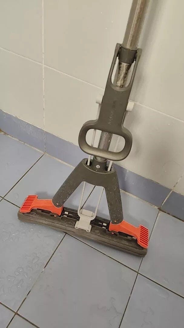 Moppen är väldigt enkel att använda och sparar mycket tid. Jag gillar att jag slipper röra smutsigt vatten.