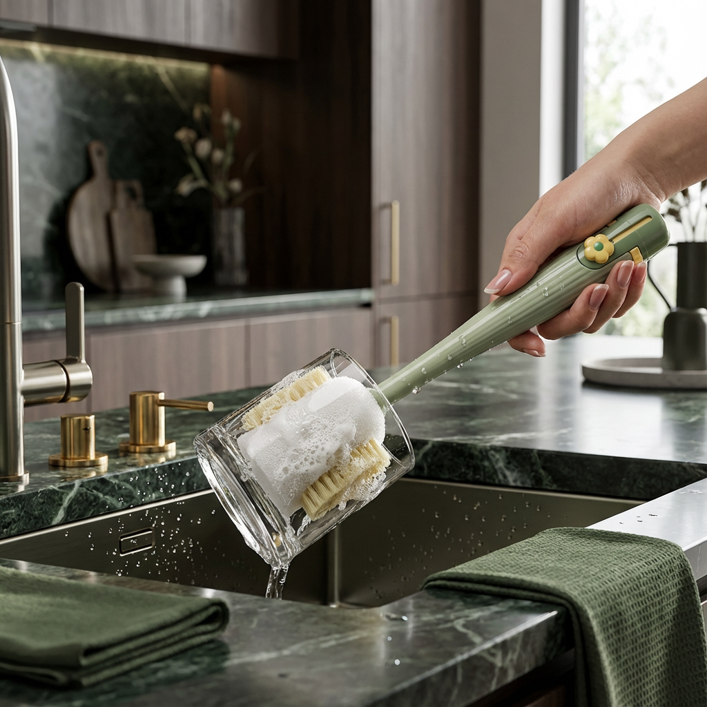 - 🧼 5 rengöringsverktyg i ett set: För varje hörn finns rätt verktyg – långa borstar för flaskor eller små borstar för lock.
