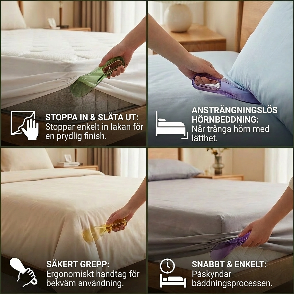 Denna praktiska hjälp för att bädda sängen är den perfekta lösningen för att göra sängklädesbyten både enkla och snabba. Tillverkad av hållbara material och med en ergonomisk design, säkerställer detta verktyg att sängklädesbyten går smidigare och snabbare än någonsin tidigare.
