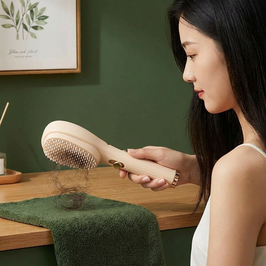 “Massagehårkammen ligger bekvämt i handen och reder ut mitt långa hår utan att slita på det. Särskilt praktiskt tycker jag att håret kan tas bort med ett knapptryck – äntligen ingen besvärlig rengöring längre!”