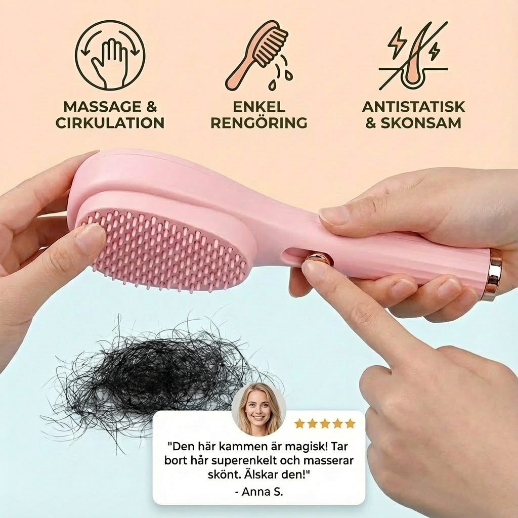 Oavsett om det är på morgonen vid styling eller på kvällen för avkoppling – denna kam blir din nya följeslagare för friskt och välvårdat hår. Slut på svårstädade borstar! Skaffa den lättstädade massagehårkammen och upplev den perfekta kombinationen av vård, avkoppling och komfort. Ditt hår och din hårbotten kommer att tacka dig!