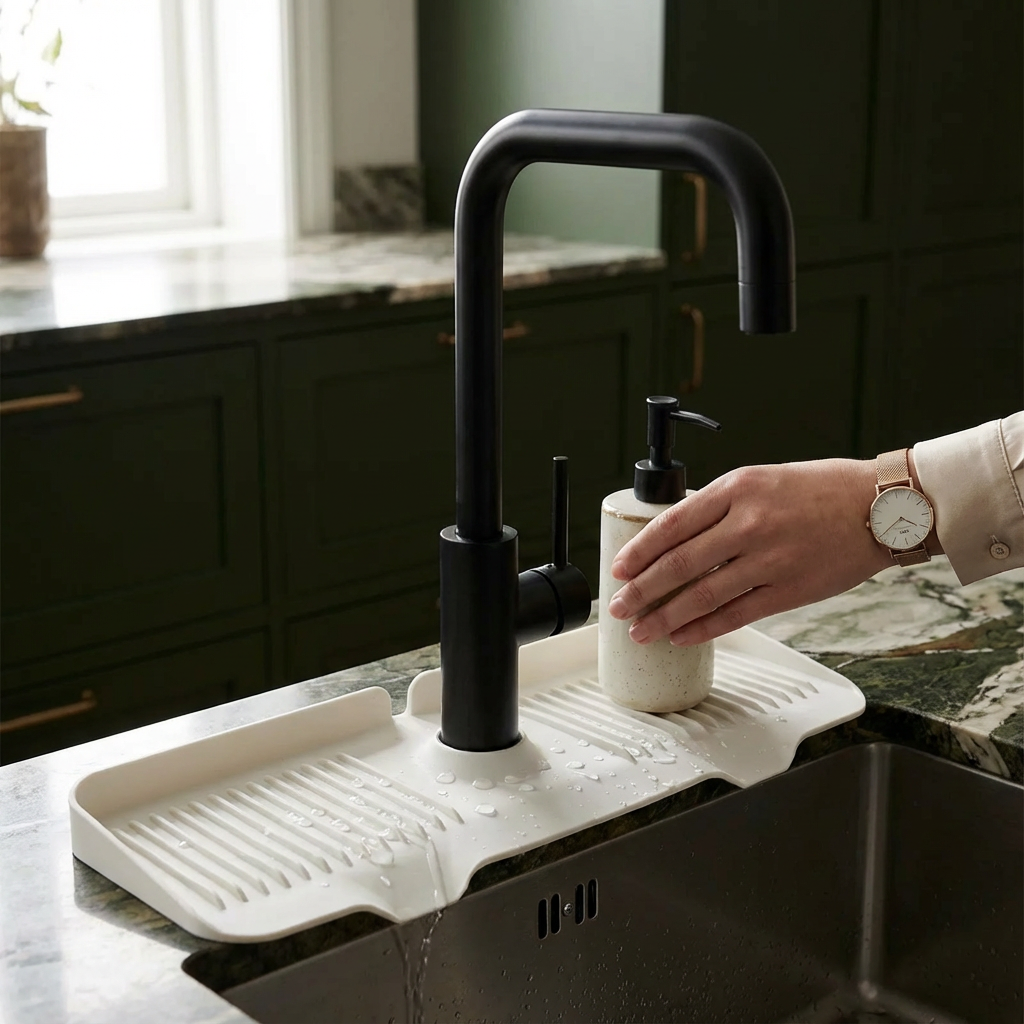 “Silikonstänkskyddsmattan är superpraktisk eftersom den gör det onödigt att ständigt torka runt kranen. Dessutom gillar jag hur lätt den är att rengöra – bara skölj snabbt och den ser ut som ny.”