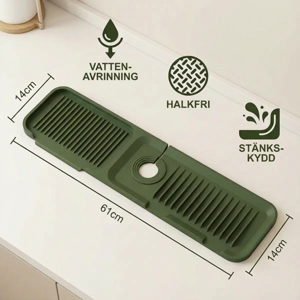 Mattan håller diskbänken torr och ren. Den är halkfri och stabil under kranen.