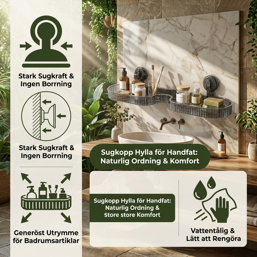 Sugkopp Hyllan för Handfat ger omedelbart mer översikt och renlighet i ditt badrum eller kök. Utan borrning eller skruvar skapar den extra förvaringsutrymme precis där du behöver det – praktisk, stabil och flexibel att använda när som helst.